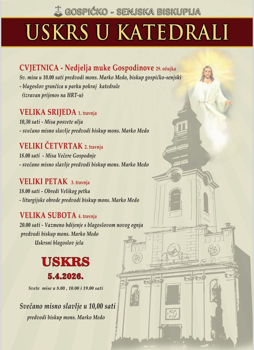 Sv. misu u 10.00 sati predvodi mons. Marko Medo, biskup gospićko-senjski