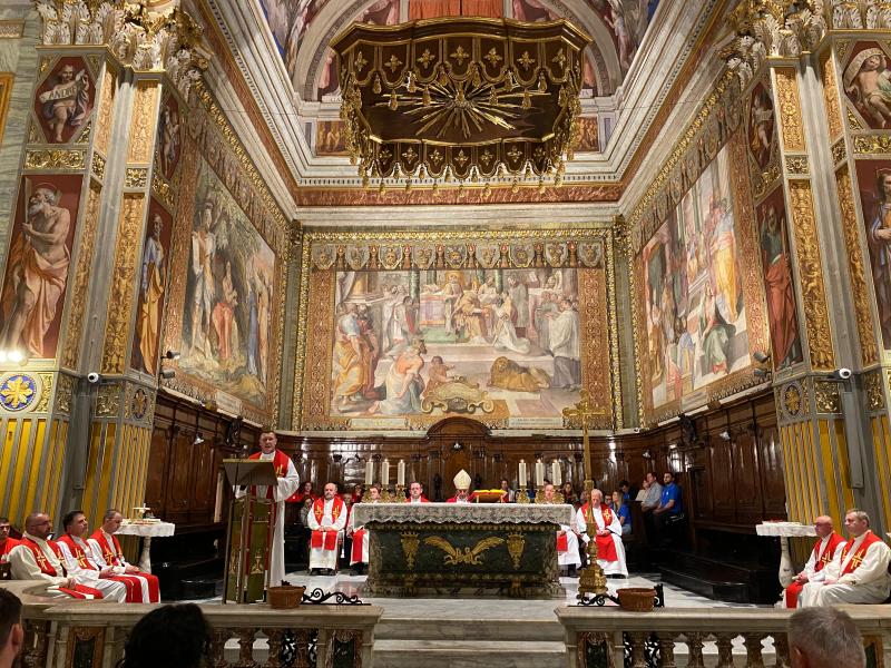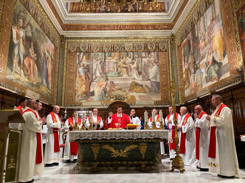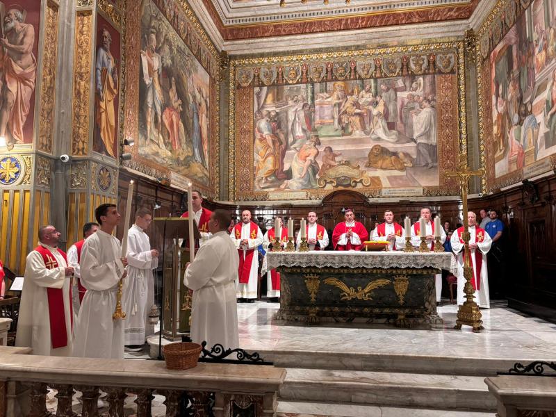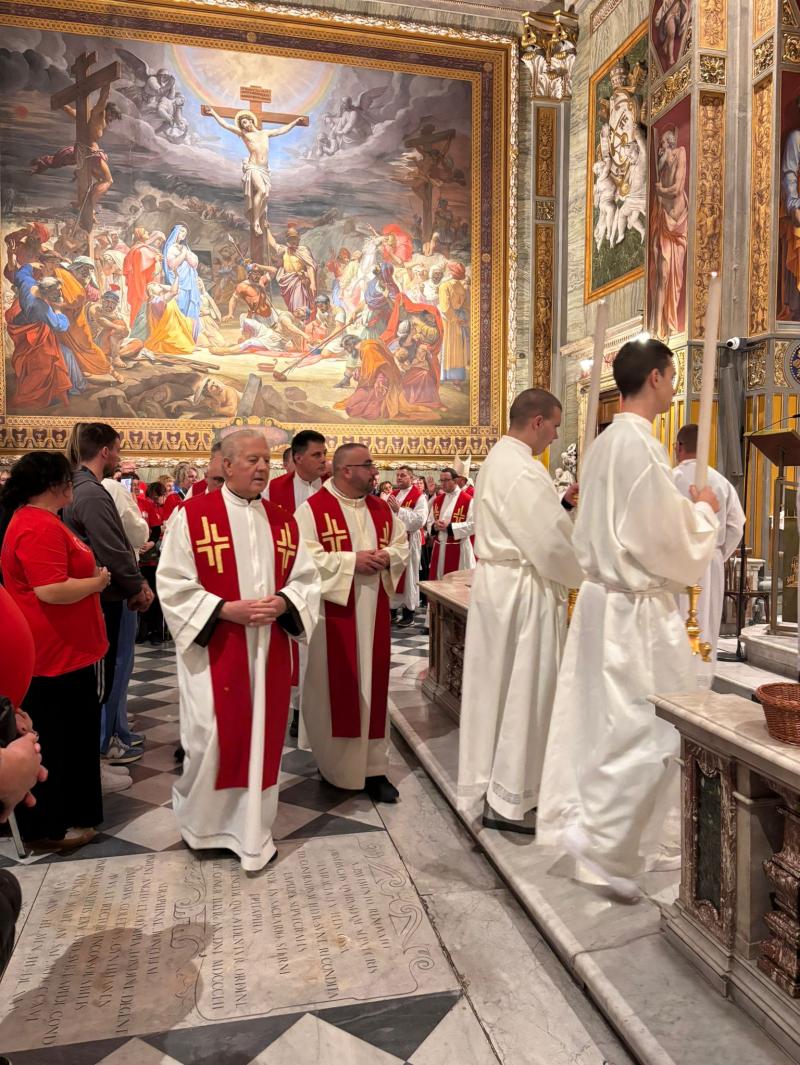 Nakon audijencije hodočasnici su posjetili Papinski hrvatski zavod svetog Jeronima, gdje ih je dočekao rektor Zavoda, preč. Marko Đurin, izrazivši dobrodošlicu i predstavivši povijest i ulogu Zavoda.