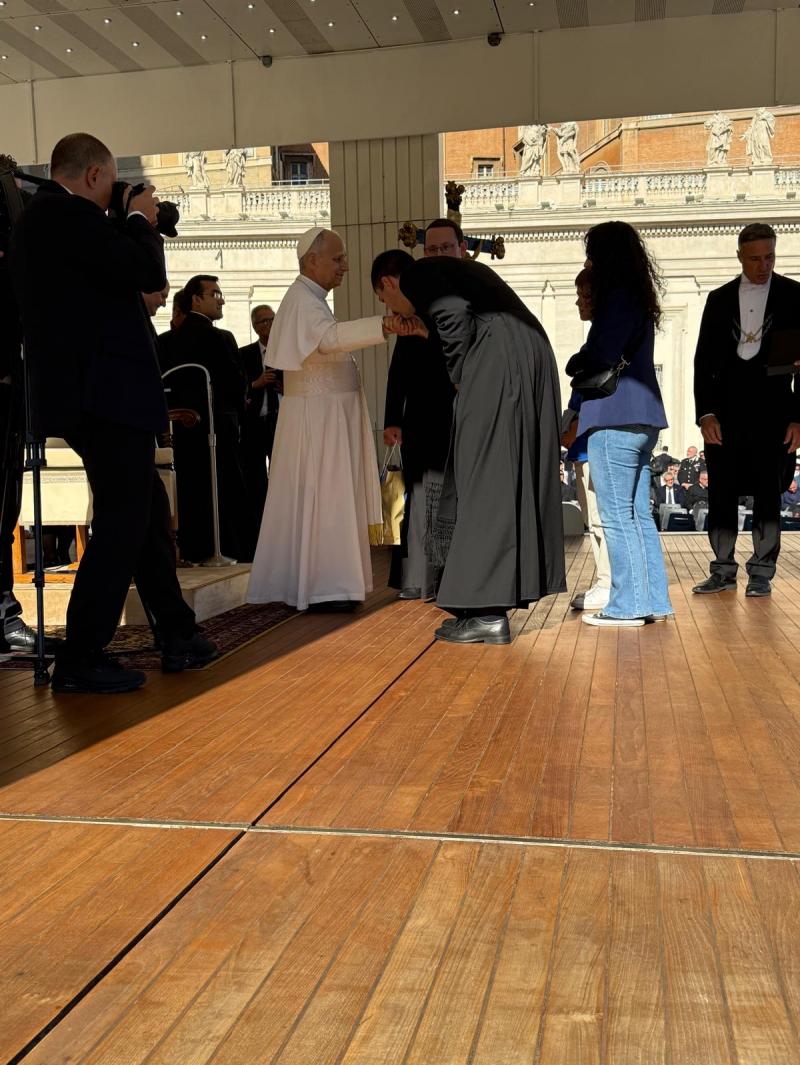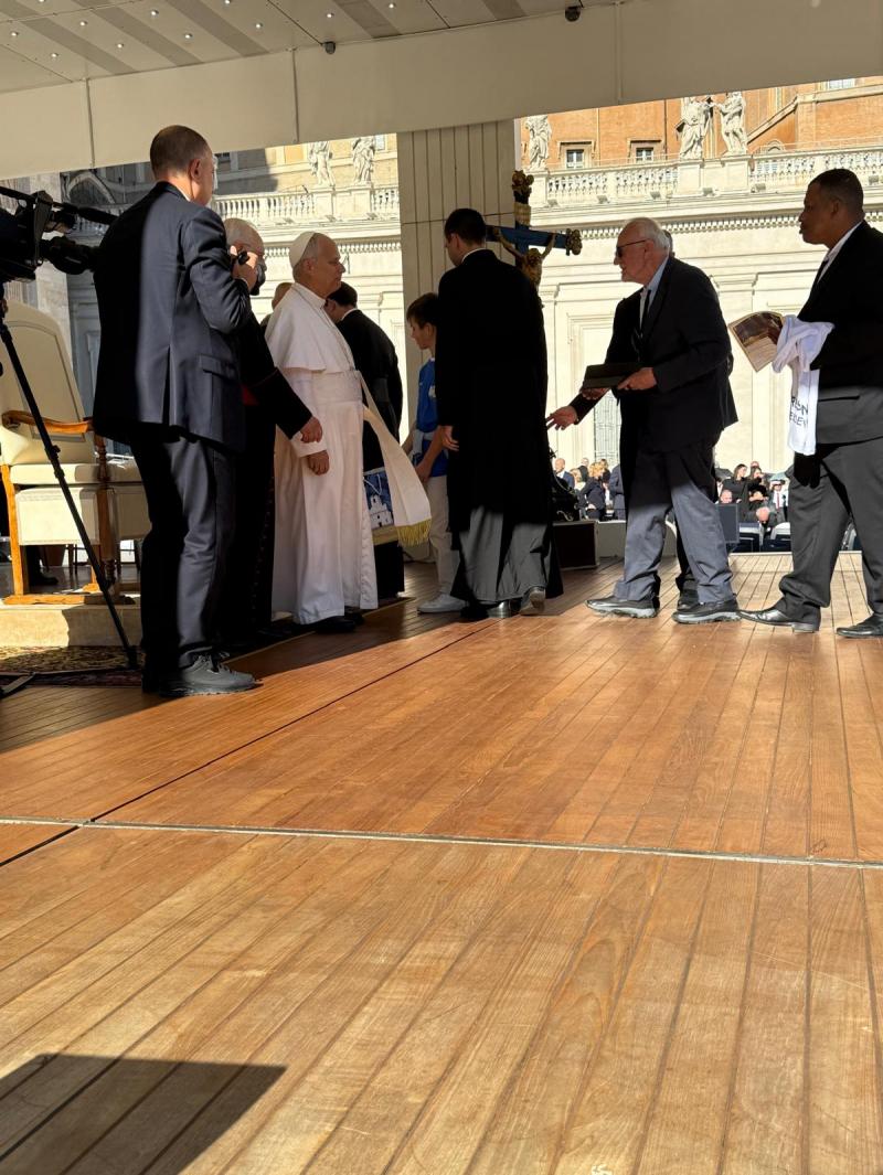 Prigodu osobno pozdraviti Svetoga Oca imali su: biskup mons. Marko Medo, kancelar biskupije preč. Mišel Grgurić, Ivana Mraović - tajnica u Biskupskom Ordinarijatu, bogoslov Marko Butković i ministrant Toma Lukač.