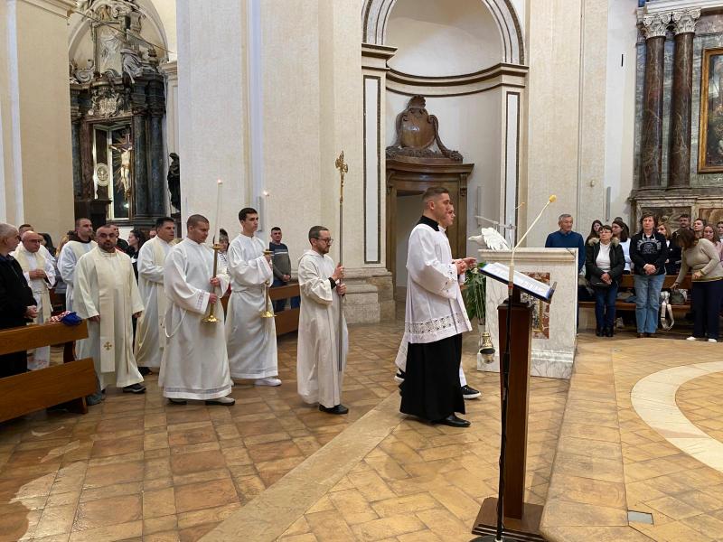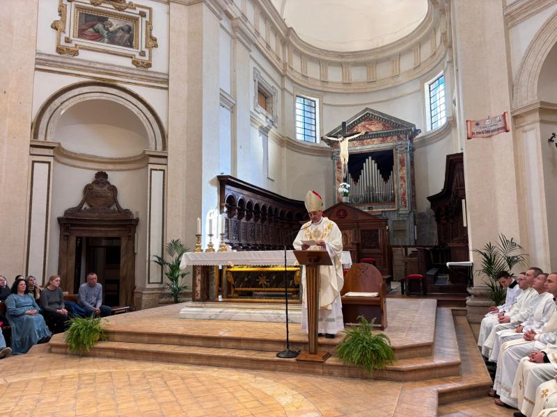 U svojoj nadahnutoj homiliji biskup Medo zahvalio je Bogu što hodočasnici mogu slaviti svetu misu upravo u gradu sv. Franje, „ocu franjevačke obitelji i zaštitniku Italije“. Podsjetio je kako je Asiz mjesto duhovnoga mira i nadahnuća te da sveti Franjo svojim životom i danas oblikuje svijet i Crkvu.