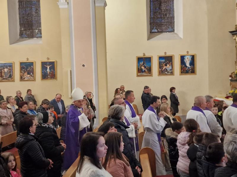 Crkva je bila ispunjena vjernicima i djecom koji su sudjelovali u molitvi i zajedništvu. Na kraju susreta župnik vlč. Goran čestitao je biskupu rođendan, a ministranti su mu uručili prigodni dar i cvijeće kao znak zahvalnosti i poštovanja.