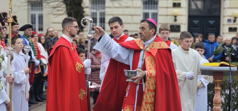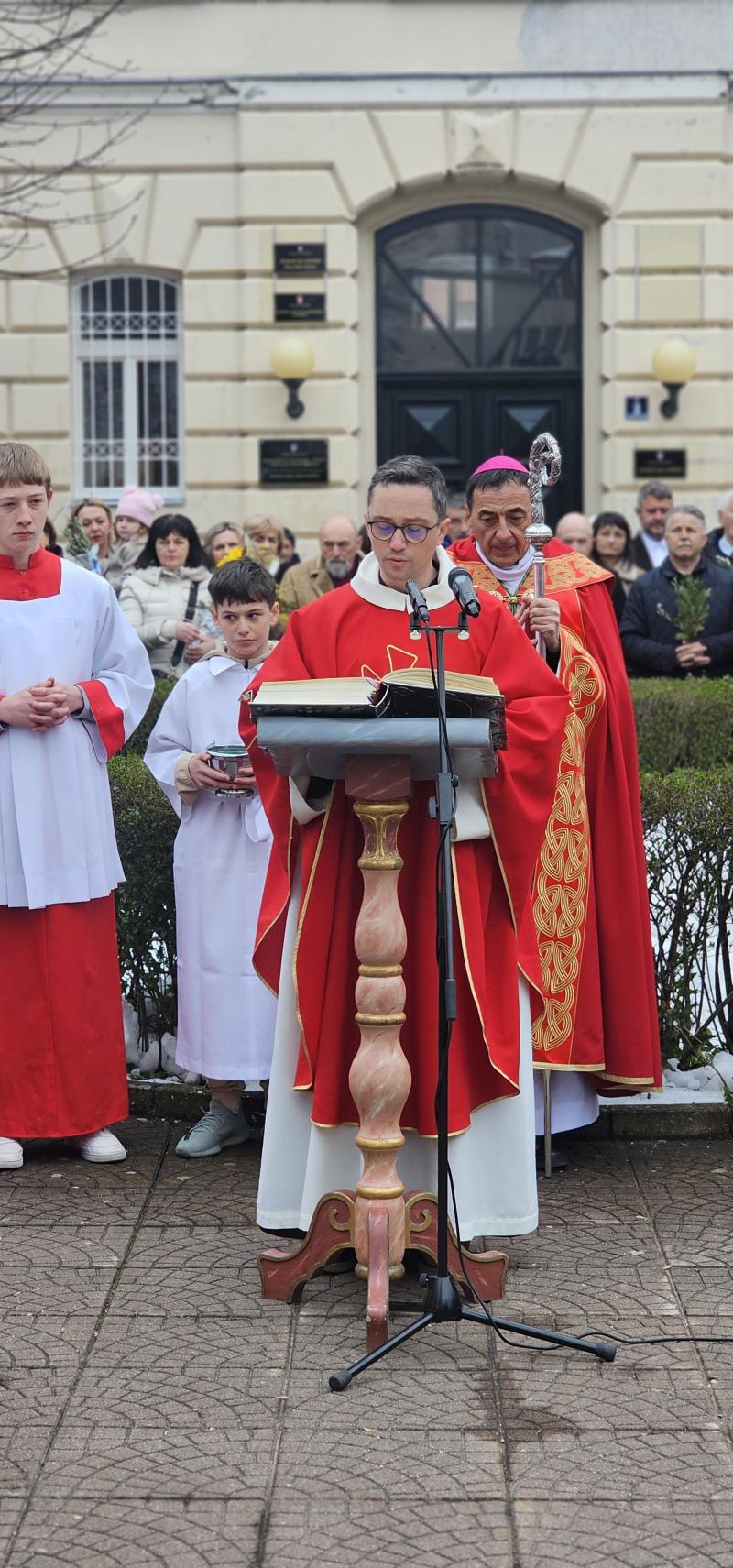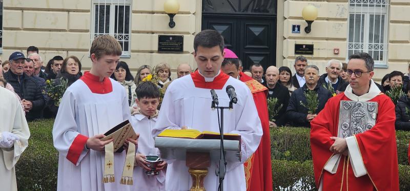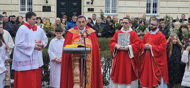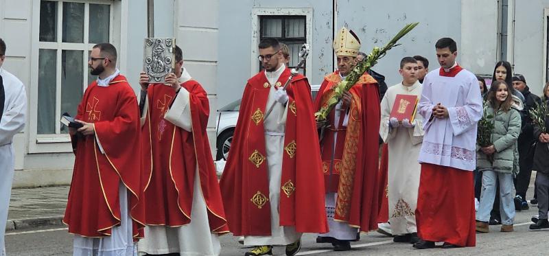 Upravo ta napetost snažno se očituje u samoj Cvjetnici, koja „vodi kroz dva velika prizora” – Isusov svečani ulazak u Jeruzalem i njegovu muku. Narod koji ga najprije prima s radošću i kliče „Hosana”, ubrzo ga odbacuje i osuđuje. „Ta dva prizora nisu samo dva događaja Velikoga tjedna. Oni su ogledalo ljudskoga srca”, rekao je biskup, dodajući kako se i život svakoga čovjeka često odvija između prihvaćanja i odbacivanja Boga, između oduševljenja i nevjernosti.